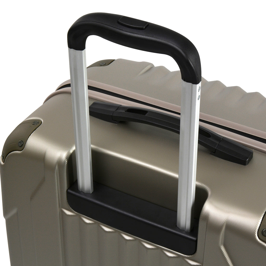 Handle caps, corner protectors, rubber studs, bumpers and other parts are attached to the suitcase using screws or can be just pressed into position.